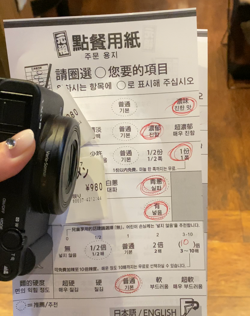 가격은 980엔이고, 직원분이 주문서 주는데